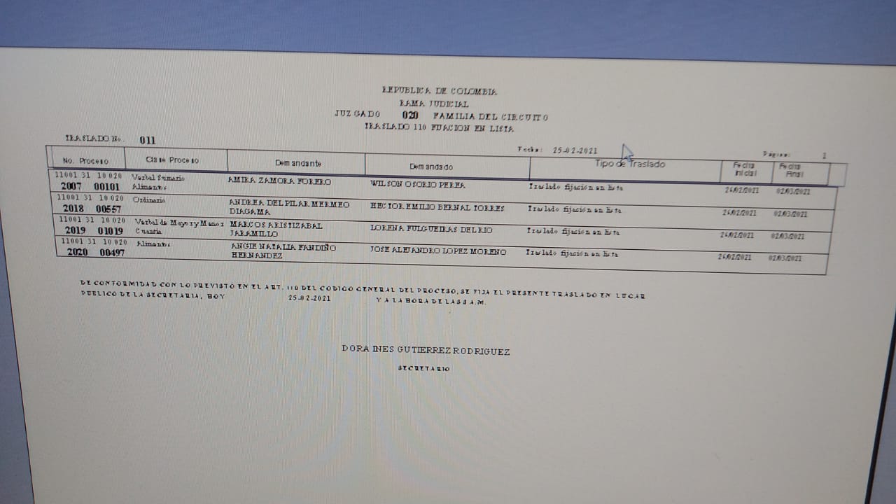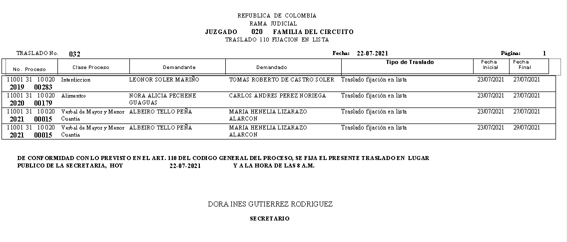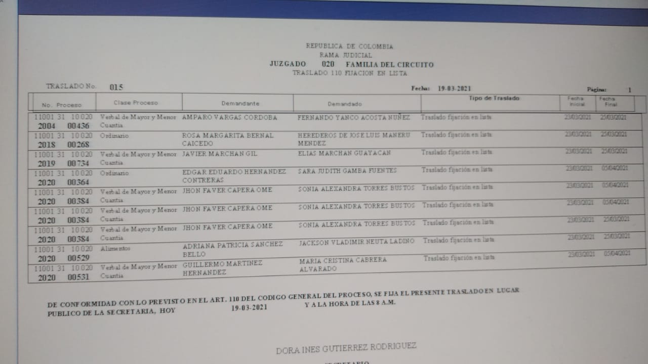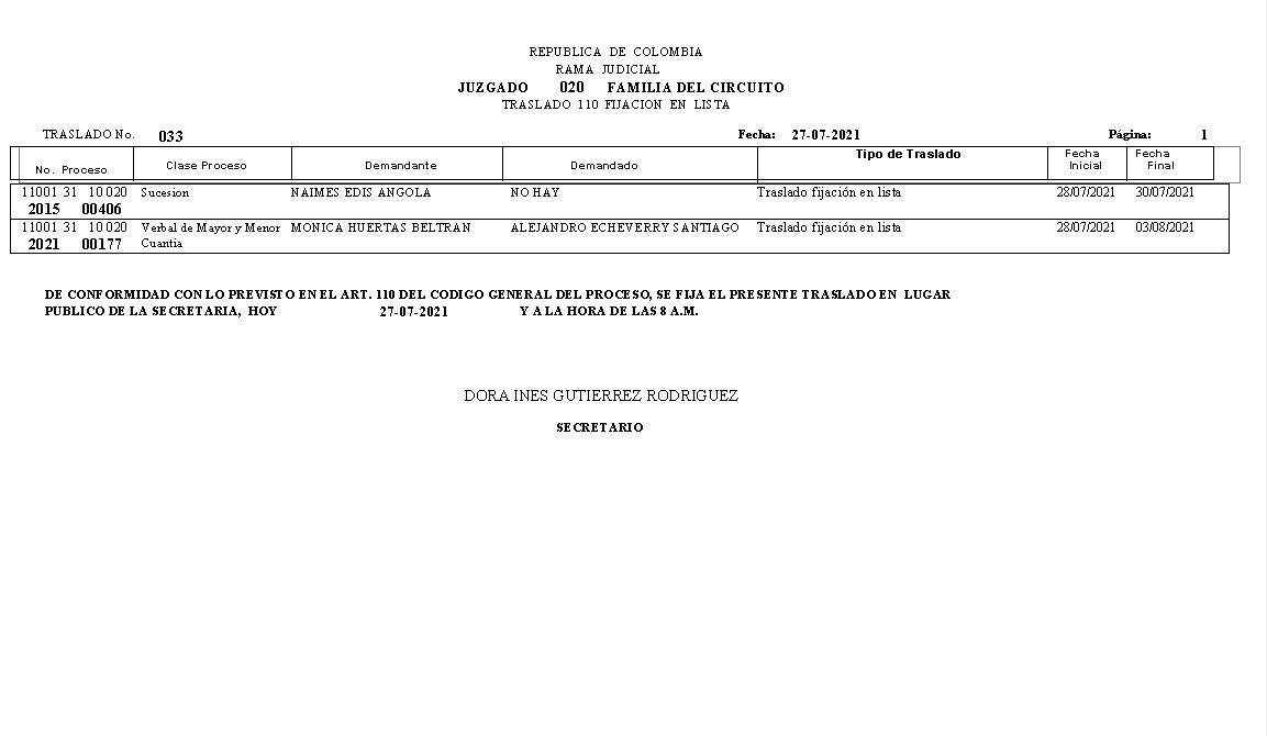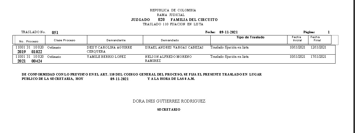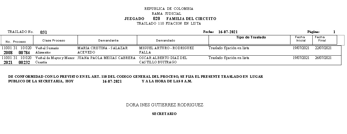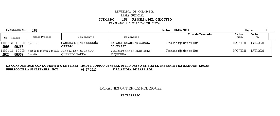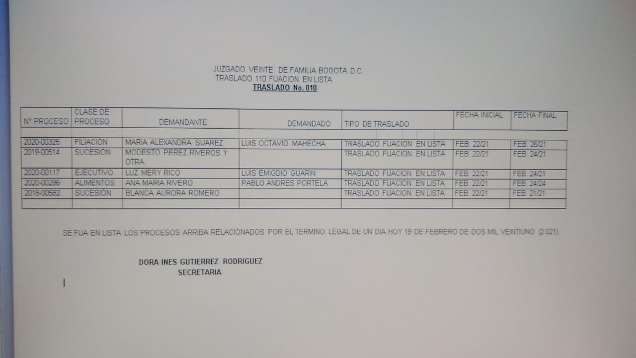 JUZGADO 020 DE FAMILIA DE BOGOTÁ