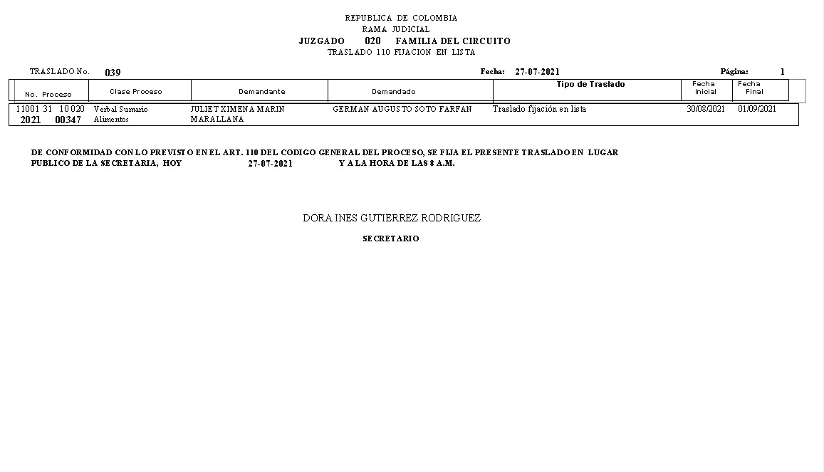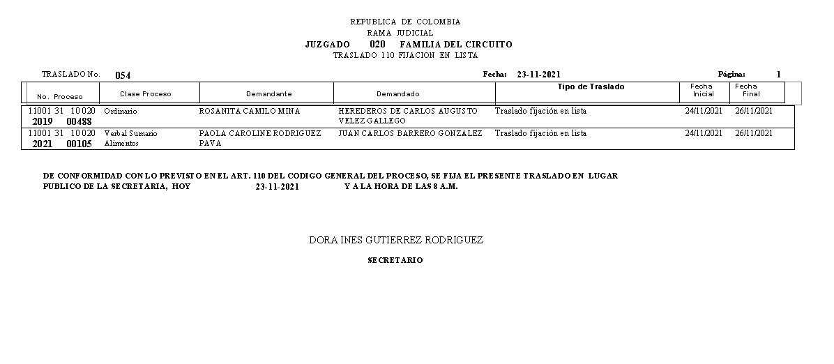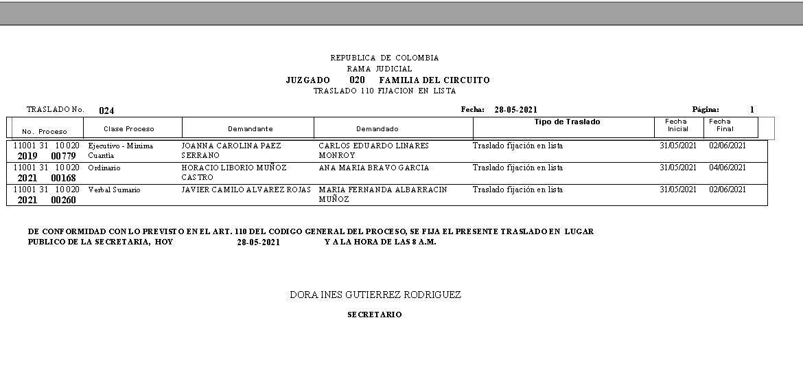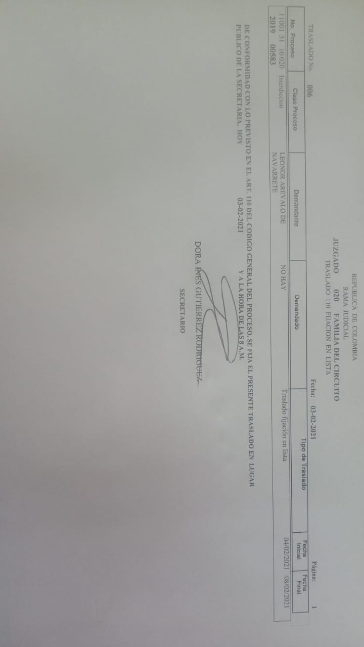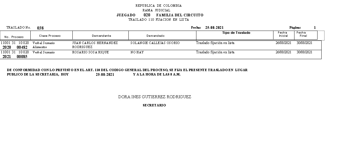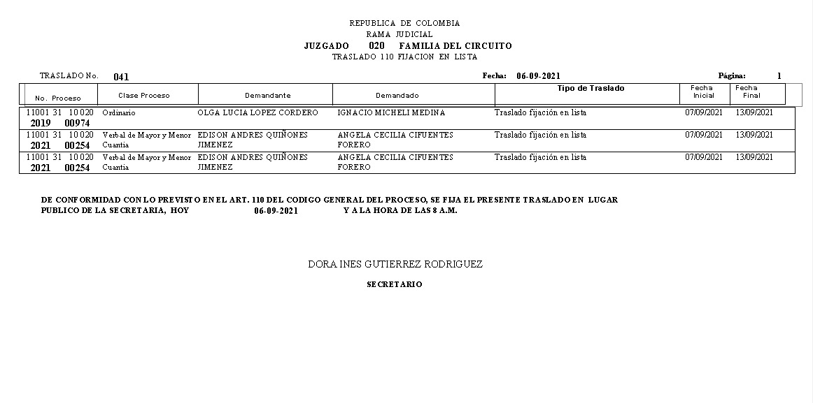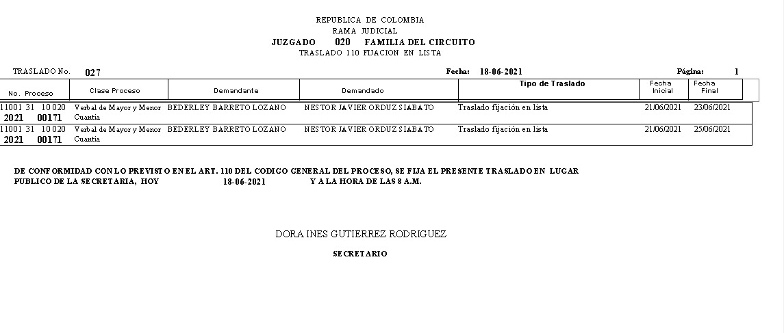 JUZGADO 020 DE FAMILIA DE BOGOTÁ