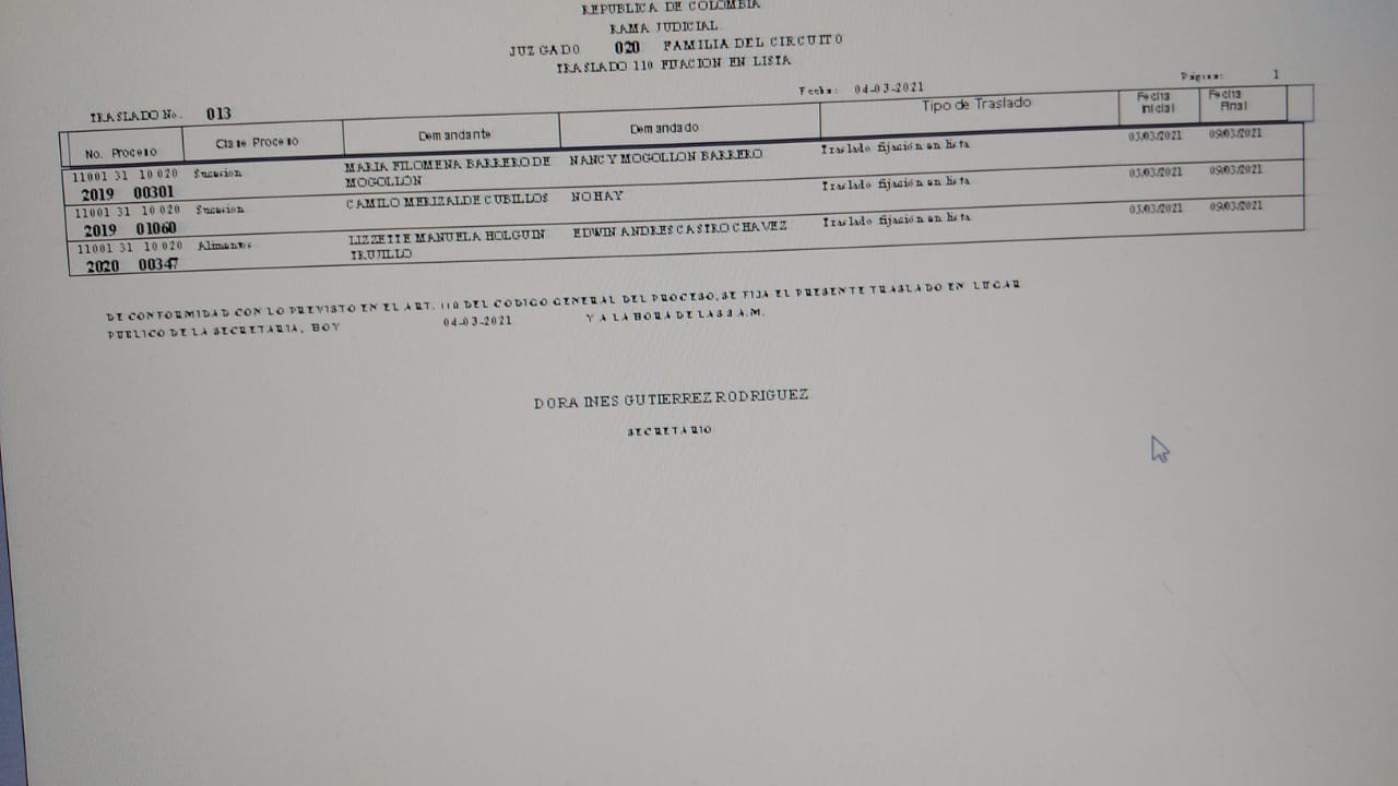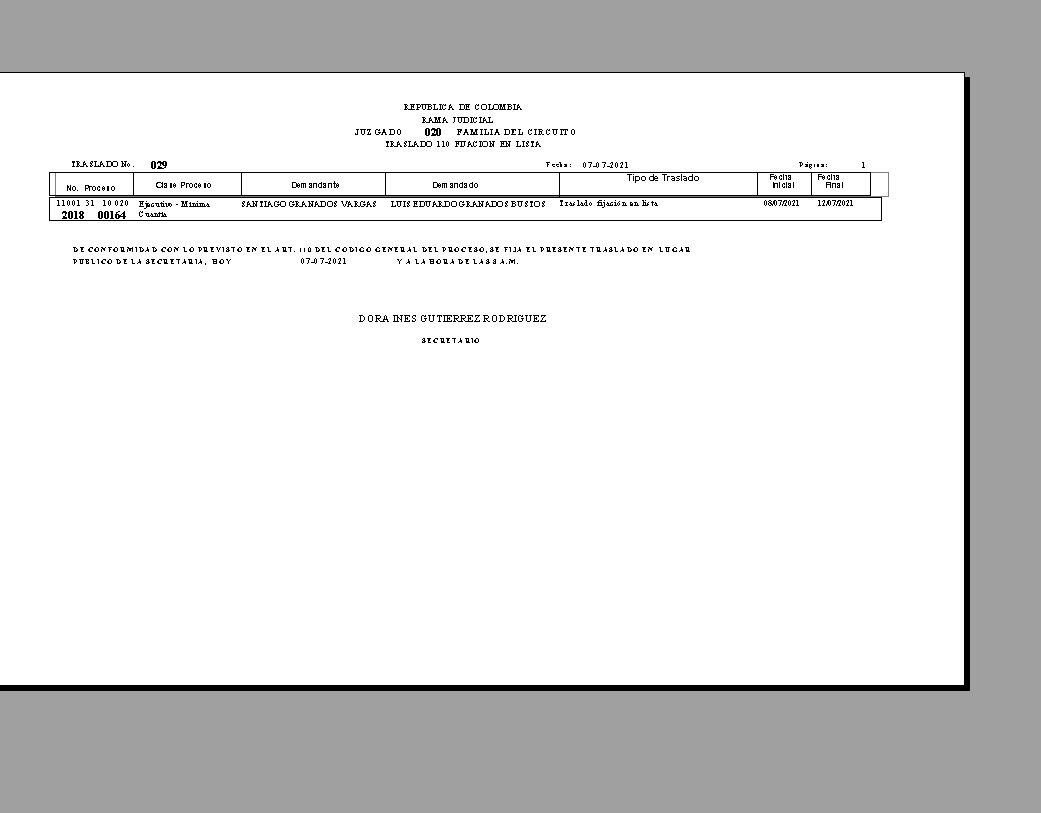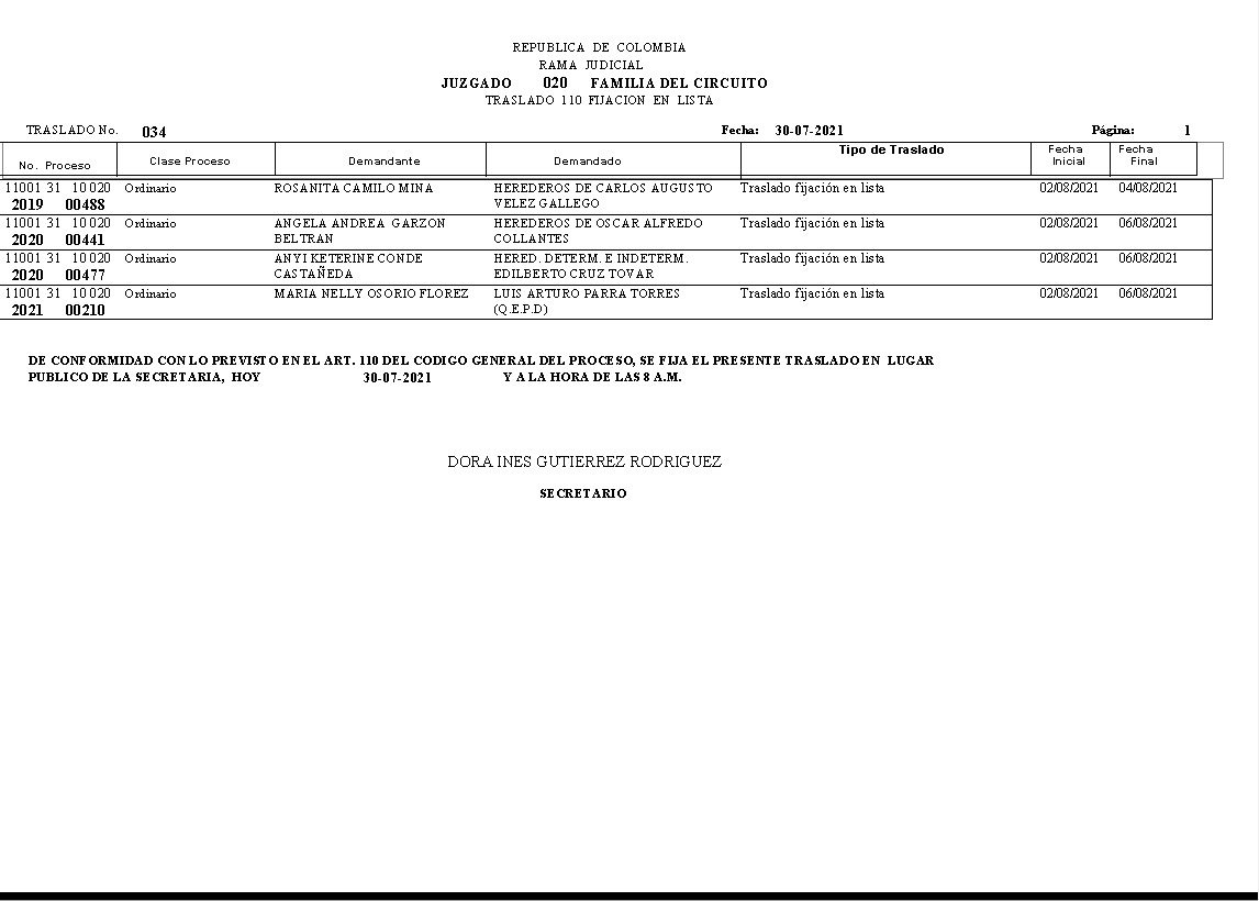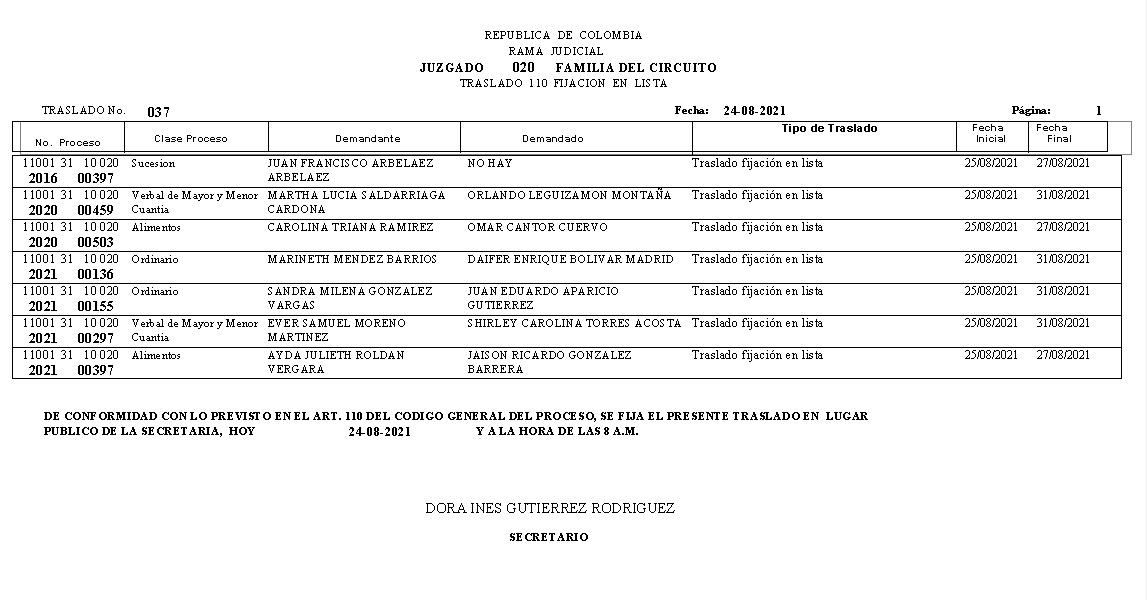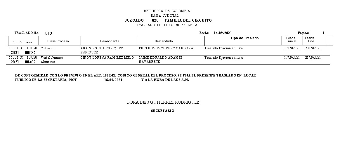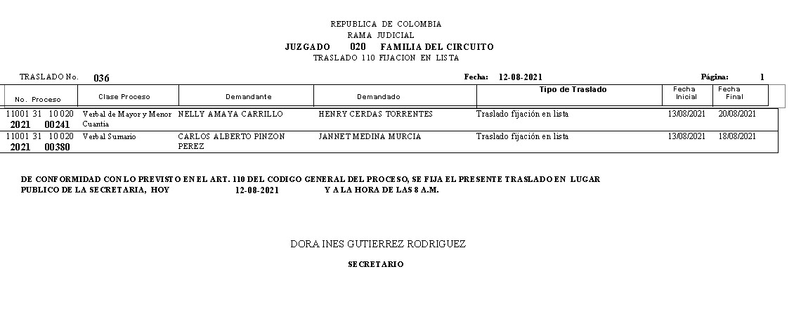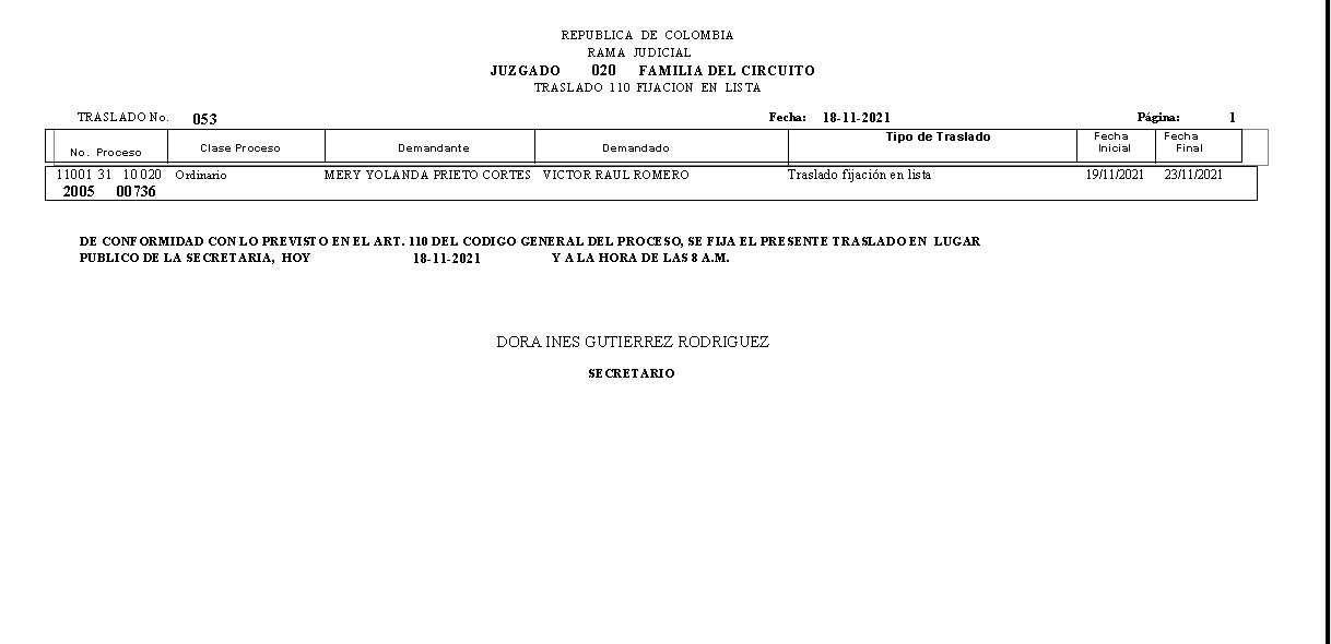 JUZGADO 020 DE FAMILIA DE BOGOTÁ