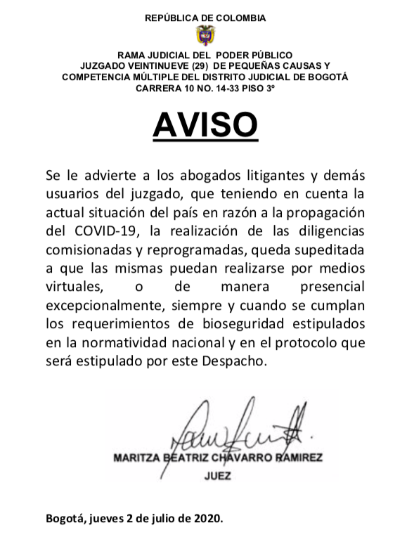 • JUZGADO 029 DE PEQUEÑAS CAUSAS Y COMPETENCIA MÚLTIPLE DE BOGOTÁ