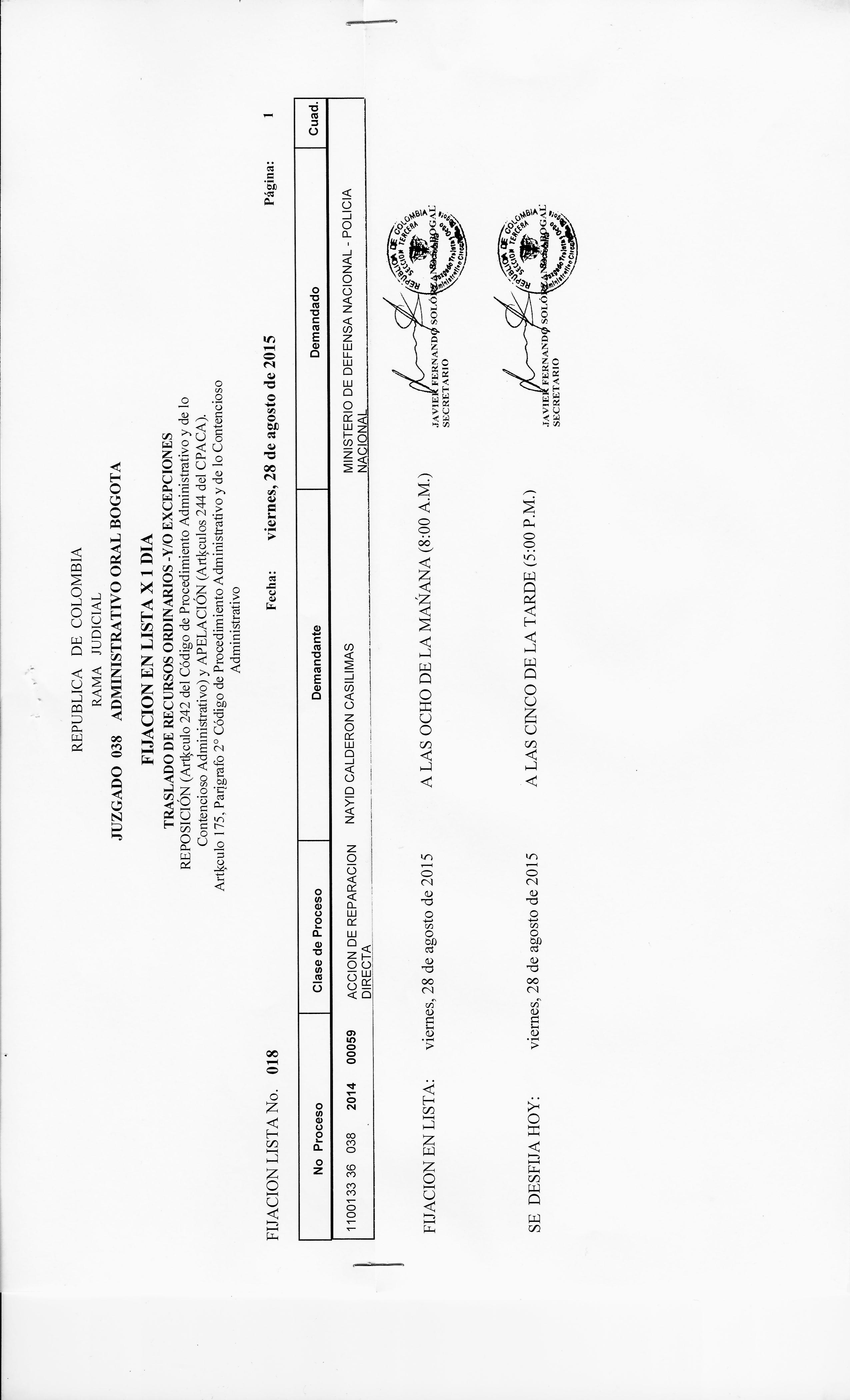 JUZGADO 038 ADMINISTRATIVO DE LA SECCIÓN TERCERA DE BOGOTÁ