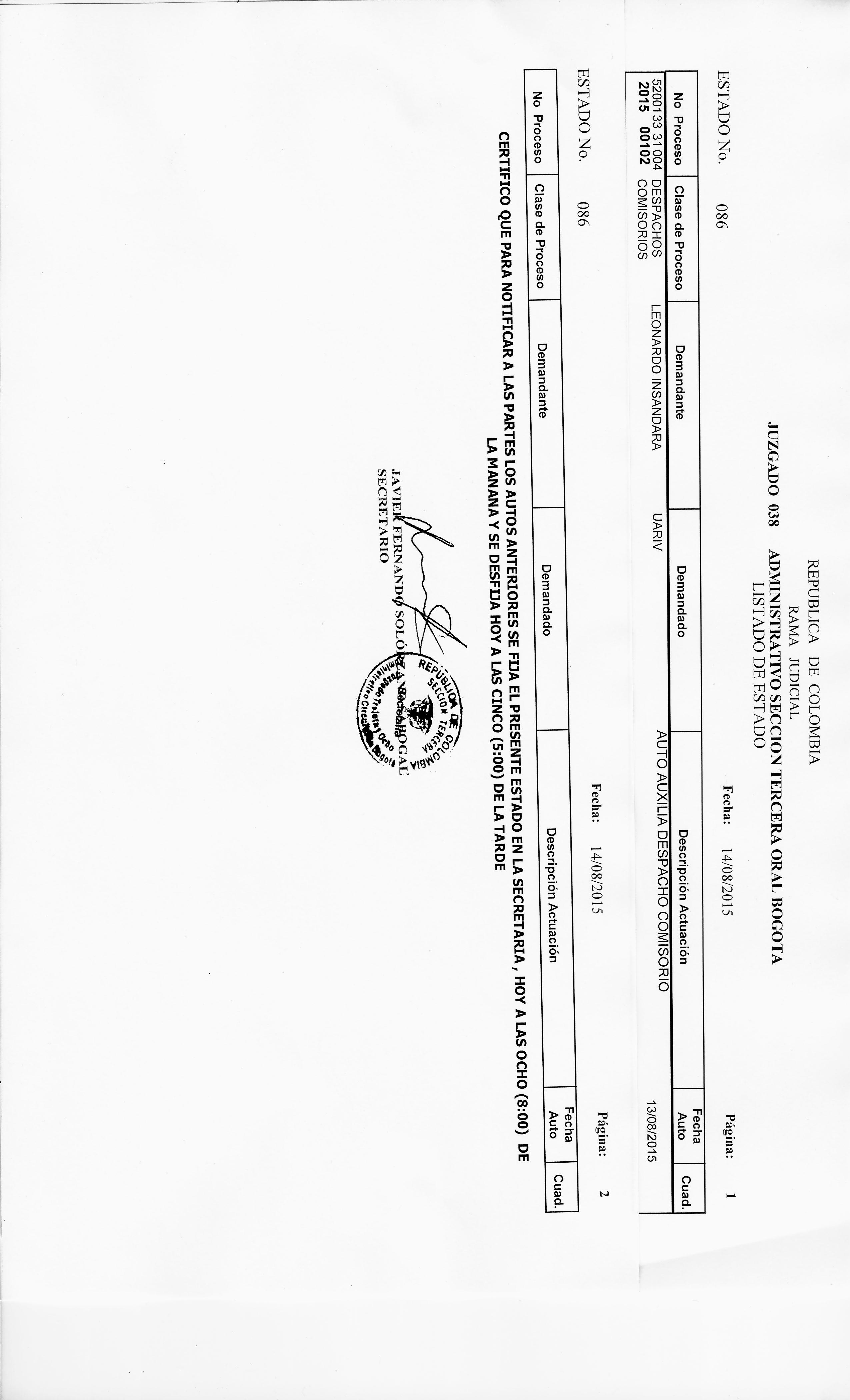 JUZGADO 038 ADMINISTRATIVO DE LA SECCIÓN TERCERA DE BOGOTÁ