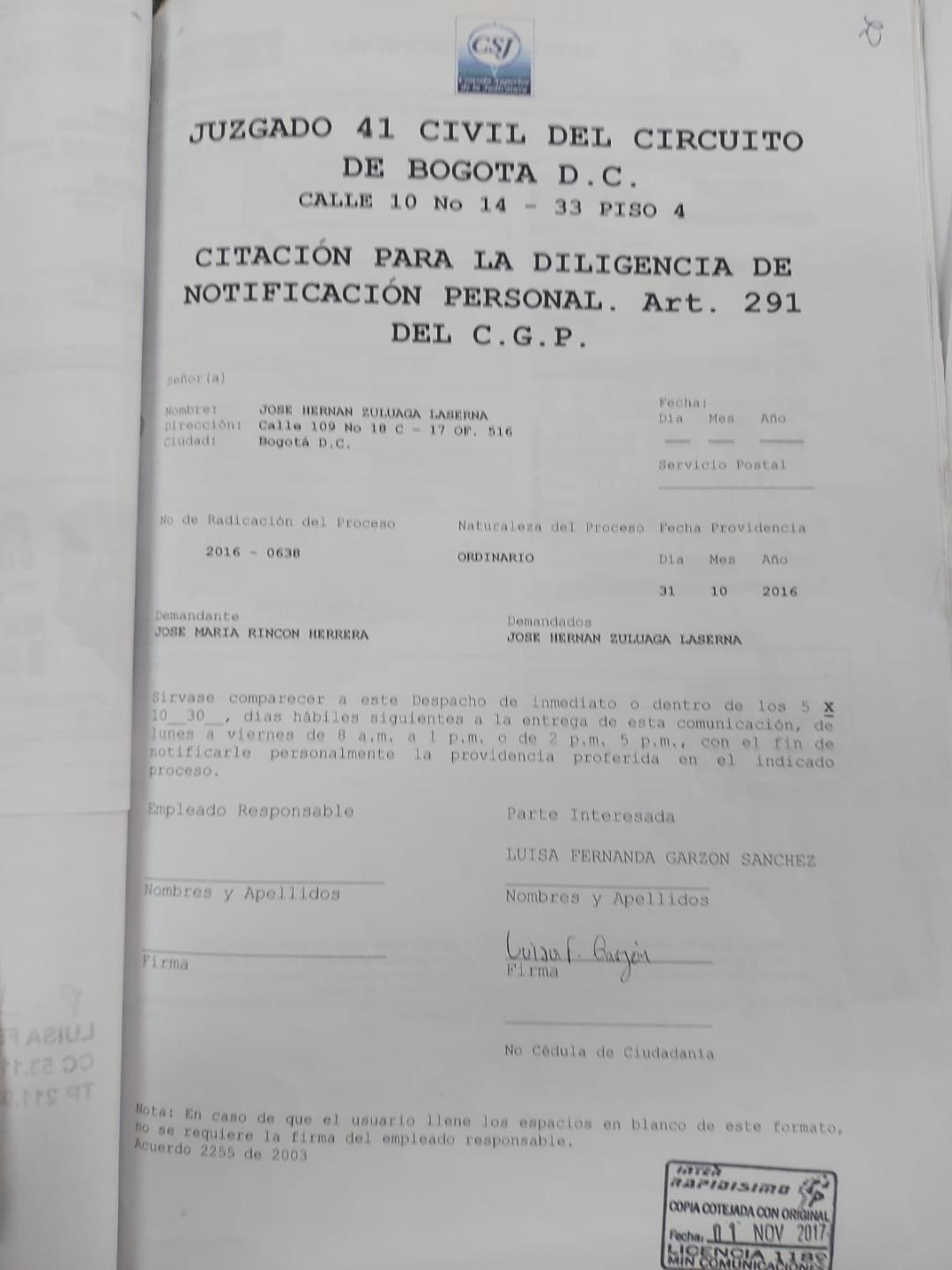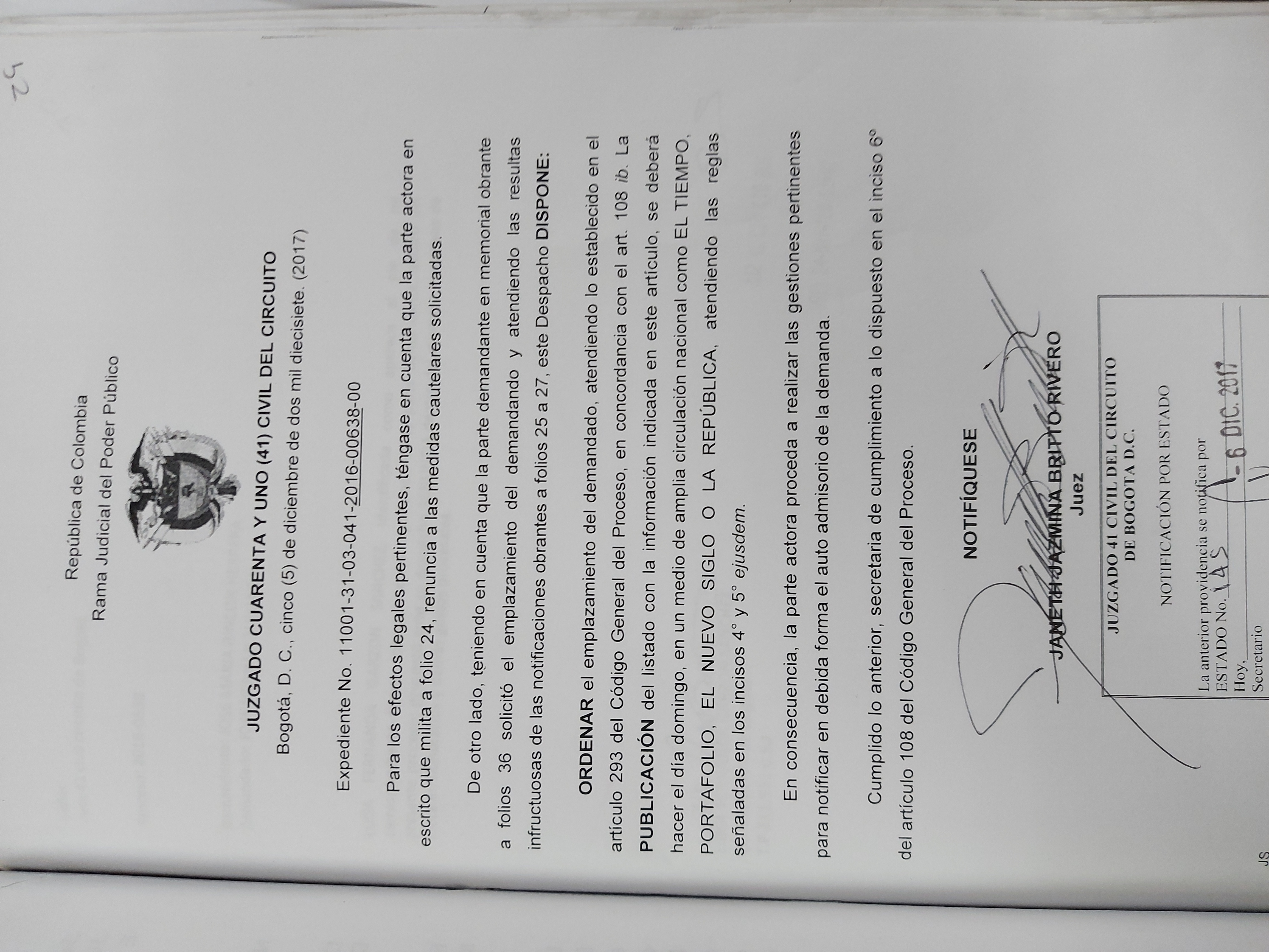 JUZGADO 41 CIVIL CIRCUITO DE BOGOTÁ