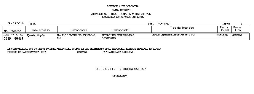 | 2019-465 | Ver Archivo | BANCO COMERCIAL AV VILLAS S.A. | PEDRO LUIS LEGUIZAMON INOCENCIO | Traslado liquidación de crédito ART. 446 CGP | 09/06/2020 | 11/06/2020 | |||||||||||||||||||||||||||||||||||||||||||||||||||||||||||||||||||||||||||||||||||||||||||||||||||||||||||||||||||||||||||||||||||||||||||||||||||||||||||||||||||||||||||||||||||||||||||||||||||||||||||||||||||||||||||||||||||||||||||||||||||||||||||||||||||||||||||||||||||||||||||||||||||||||||||||