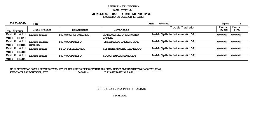 Traslado Nro 018. Junio 30 de 2020 Ver Archivo