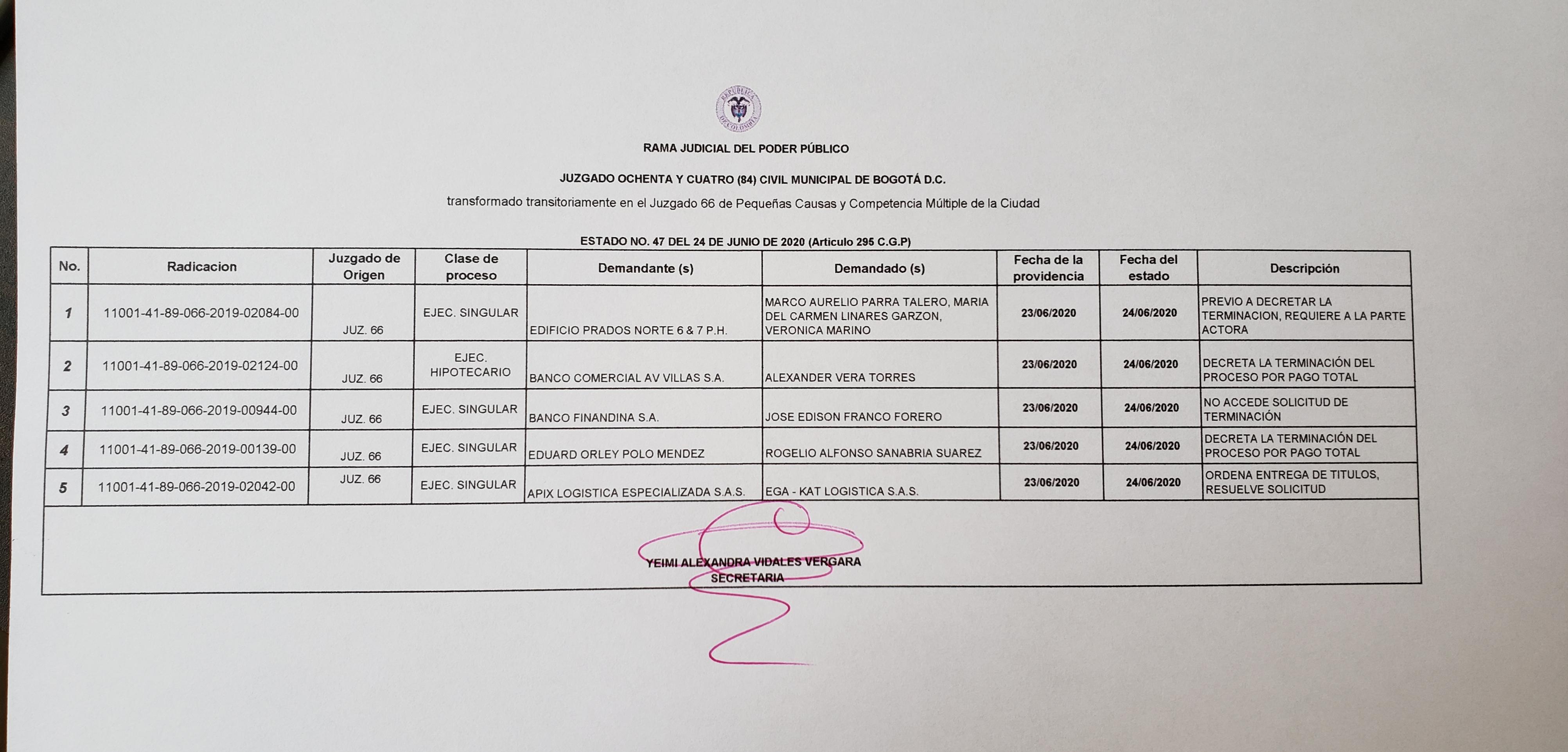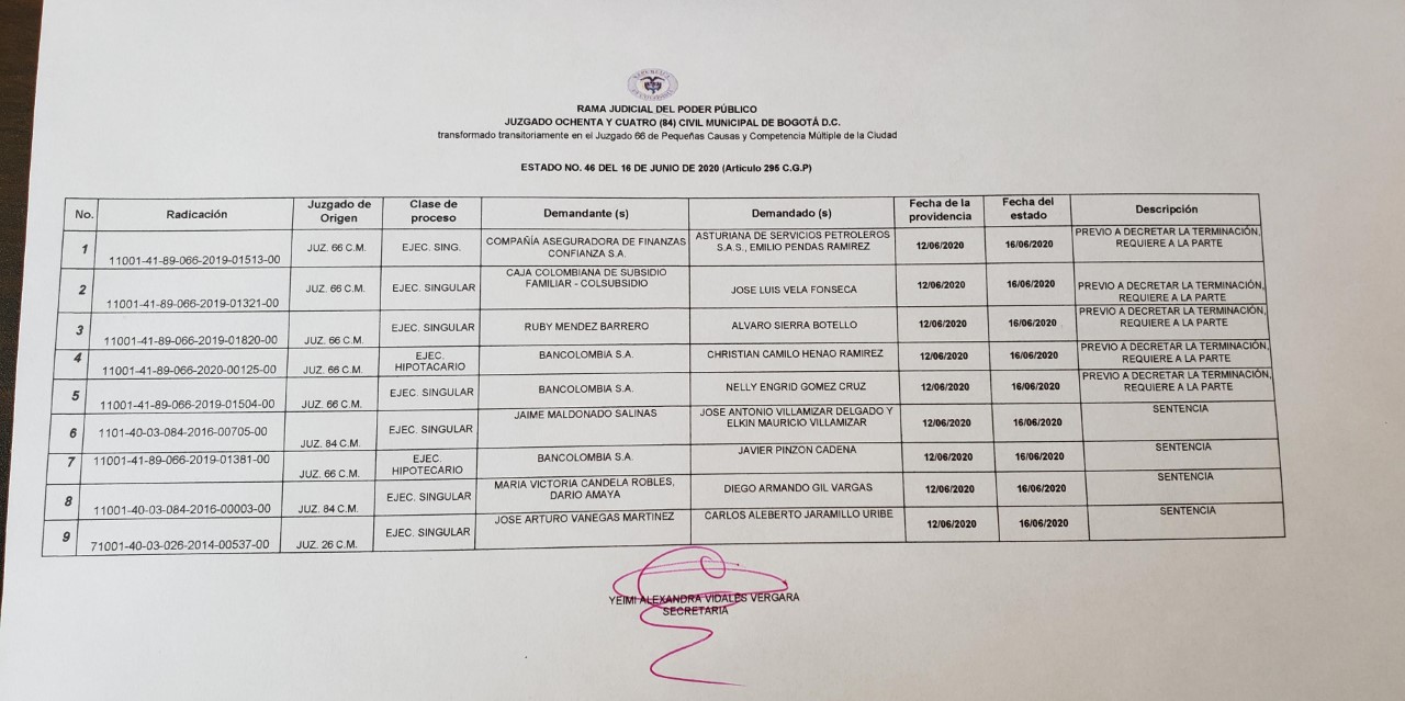 JUZGADO 084 CIVIL MUNICIPAL DE BOGOTÁ