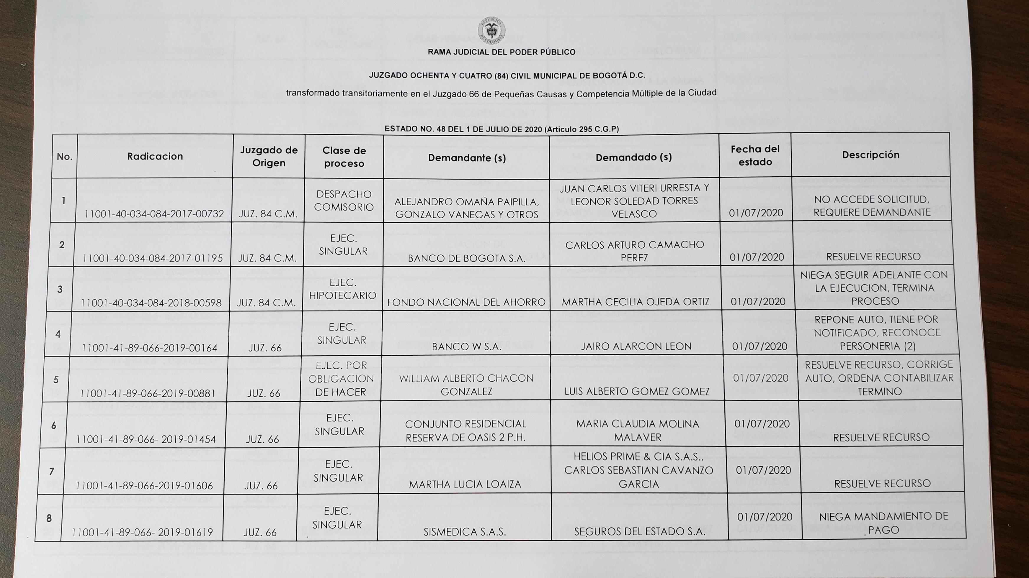 | Estado No. 48 2. 3. 4. 5. (Estado Electrónico #5) | 1/07/2020 | Providencias - descargar |