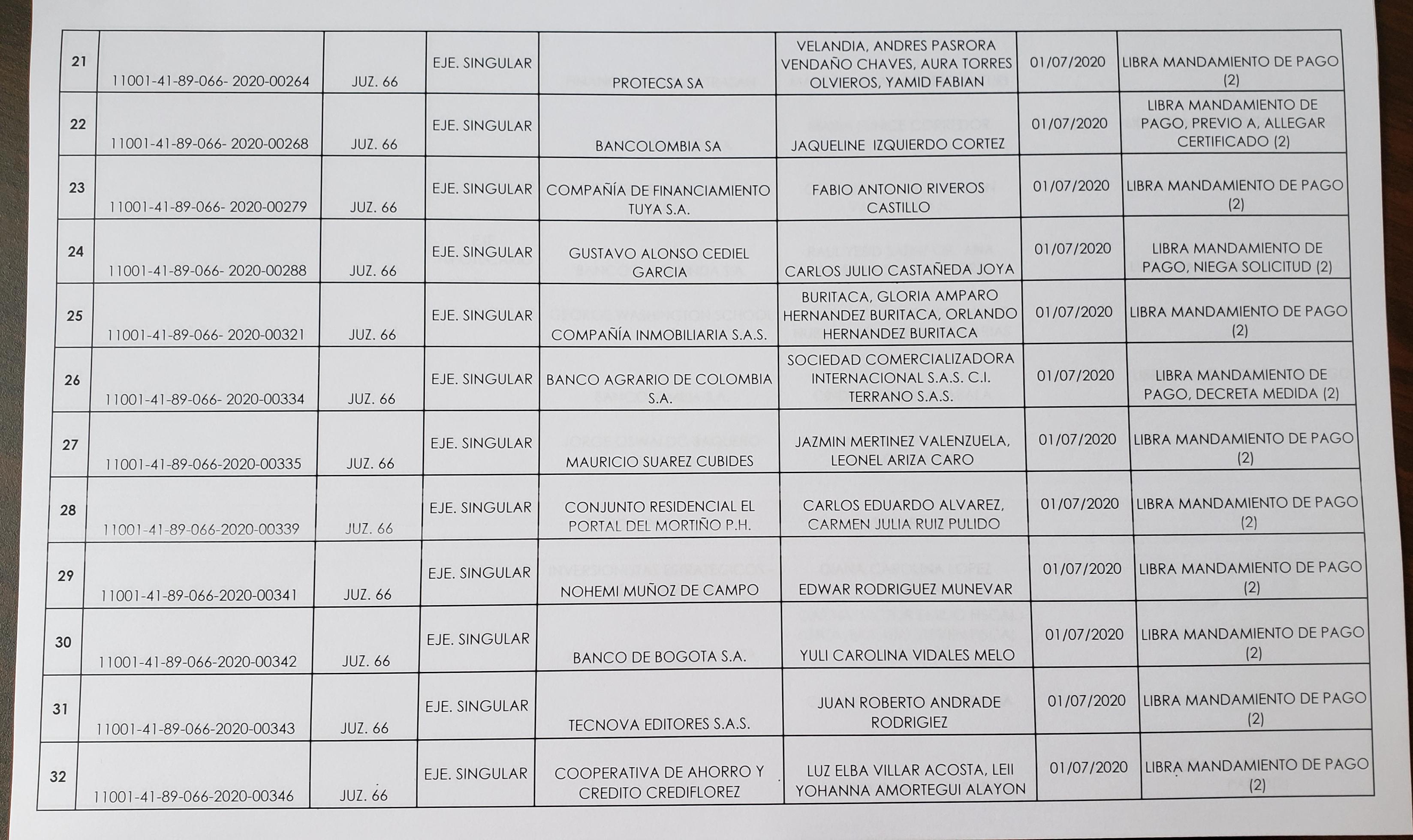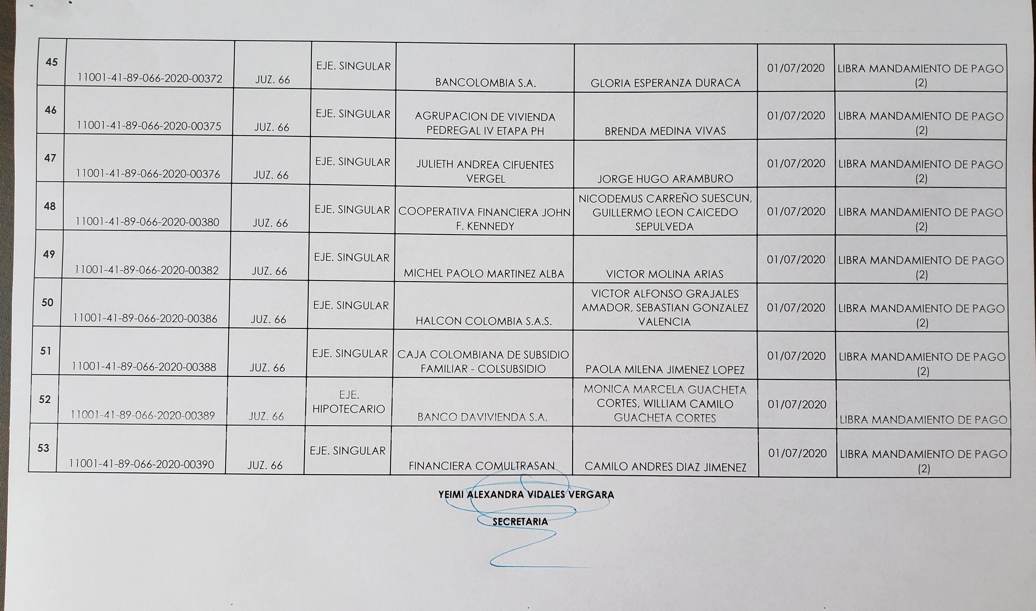 | Estado No. 66 (Estado electrónico #23) | 17/09/2020 | Providencias - descargar |